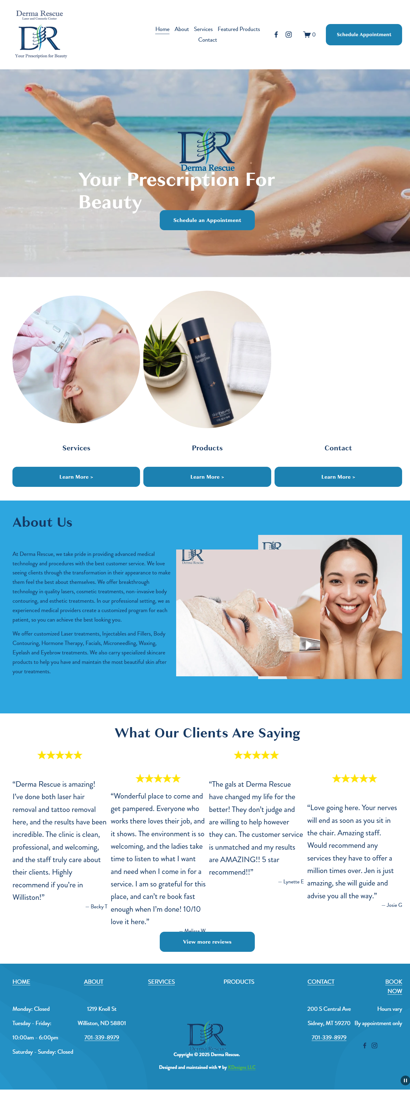 Concept and creation of Derma Rescue website, with focus on their products and services in Williston, ND and Sidney, MT areas.